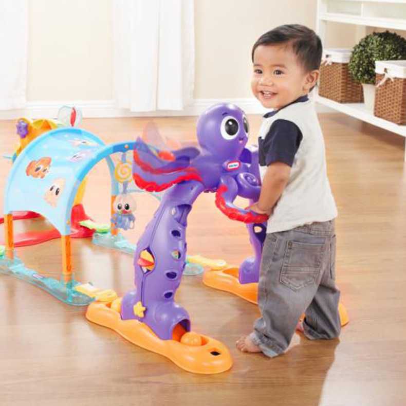 ?Octopus play station: Pull-me-up handles, ball drop, clickers, spinners, suara dan frasa yang bermanfaat saat bayi berdiri!